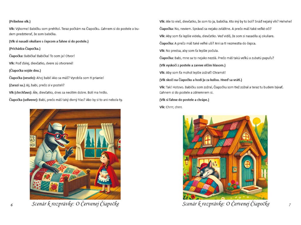 - Scenár rozprávky s dialógmi a režijnými poznámkami