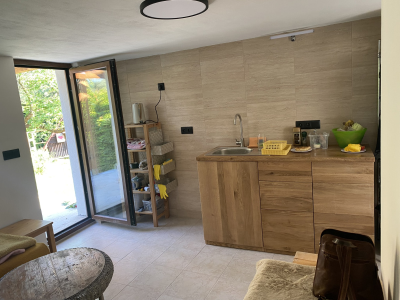 - plně vybavená kuchyň: lednice s mrazákem, dvouvařič, mikrovlnka, rychlovarná konvice