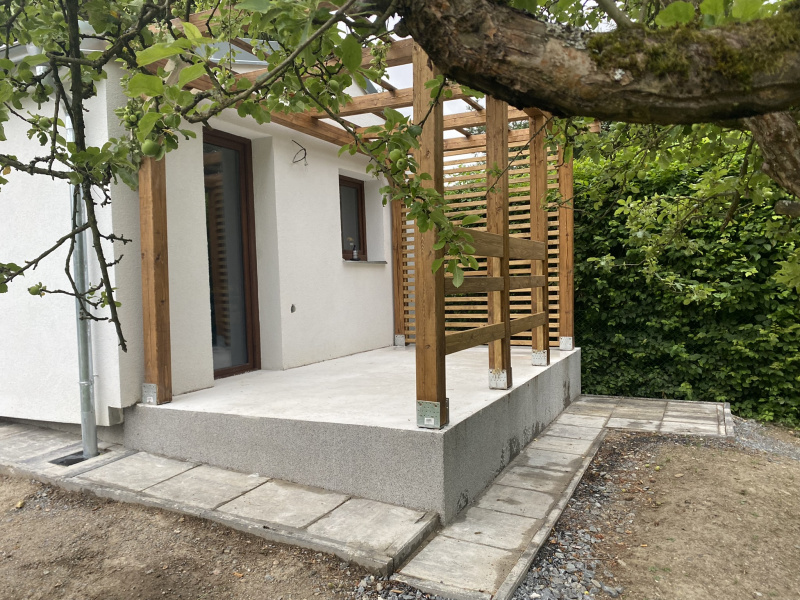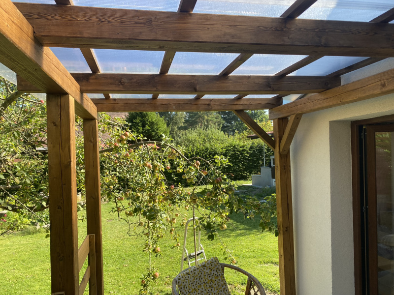 - terasa s pergolou, ideální pro ranní kávu či večerní relaxaci.