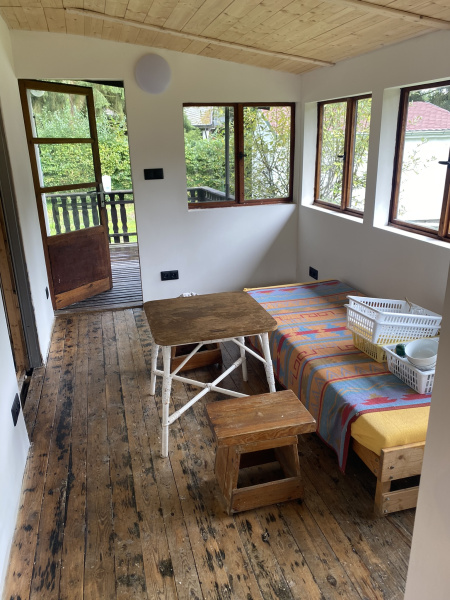 - rozkládací pohovka pro 2 osoby na prosklené verandě
