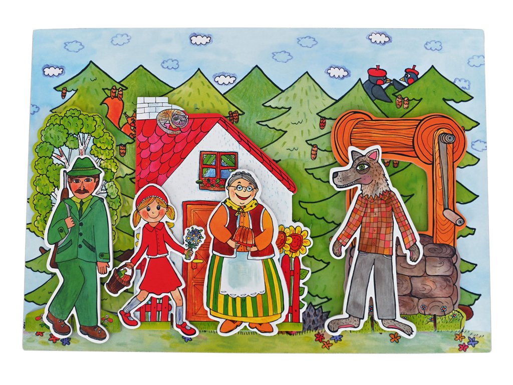 Krásné malé loutkové divadlo se spoustou barevných kulis, loutek a scénářů přináší zábavu na dlouhé hodiny – ideální pro děti i celé skupiny. V tomto kouzelném divadle najdete hned tři klasické pohádky: Červená Karkulka, Kůzlátka a Perníková chaloupka, díky nimž se každé představení stane nezapomenutelným zážitkem!