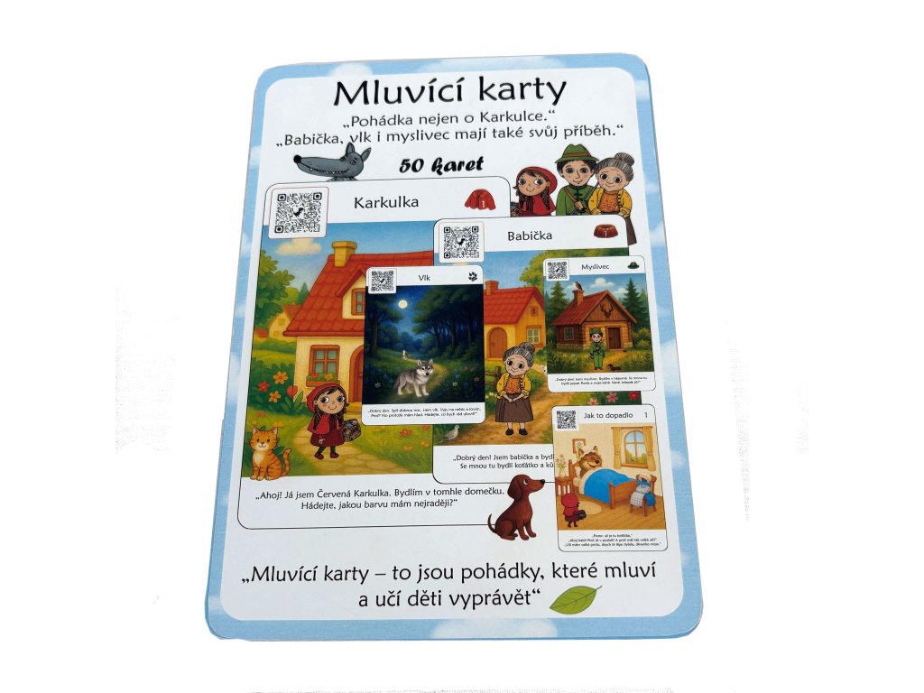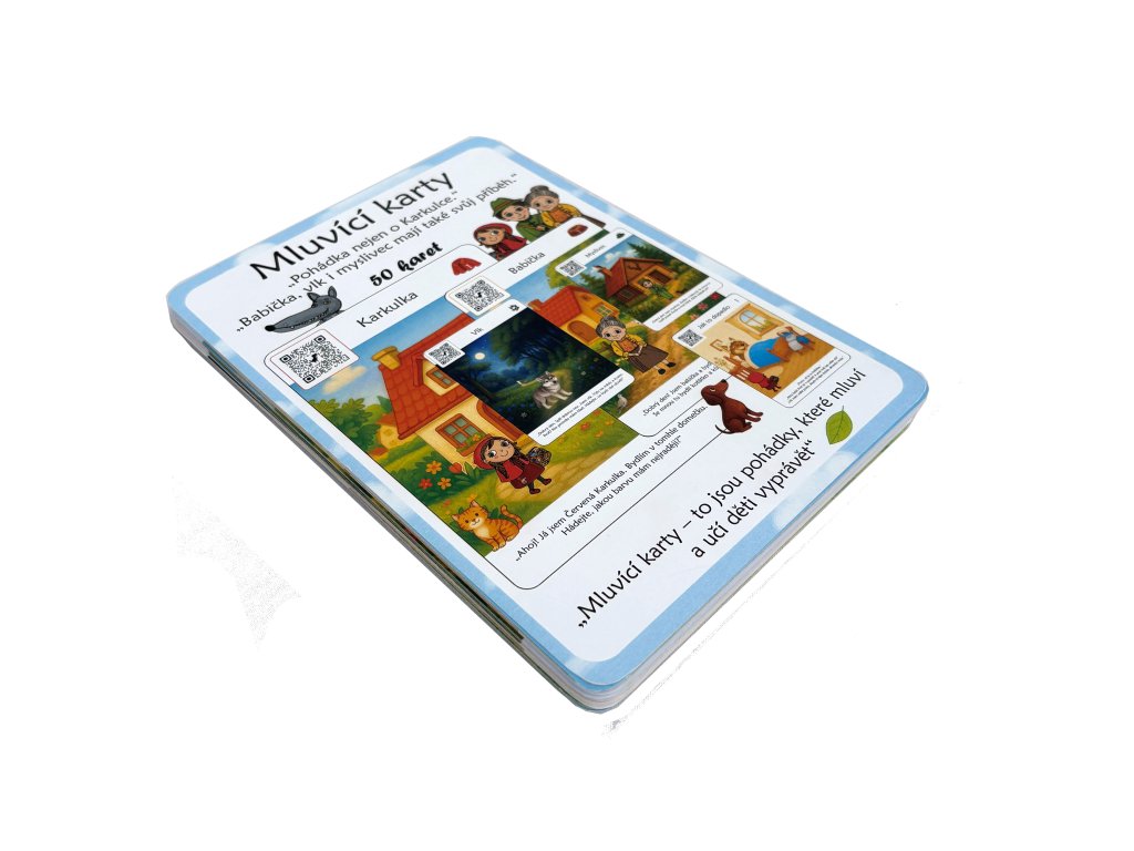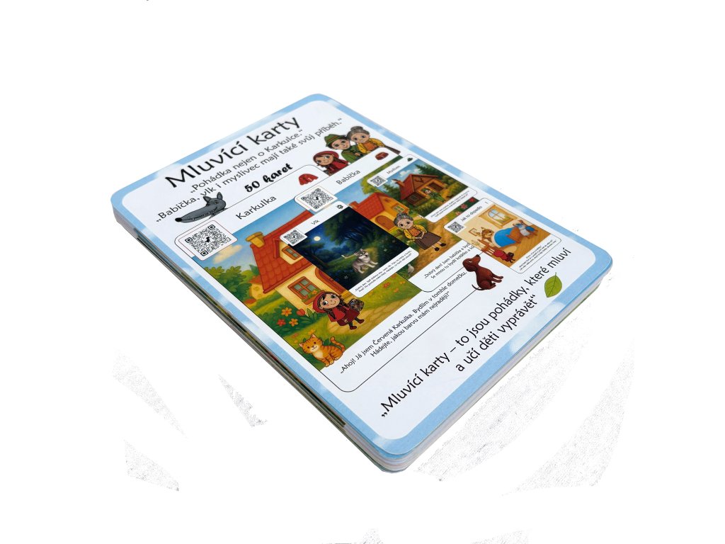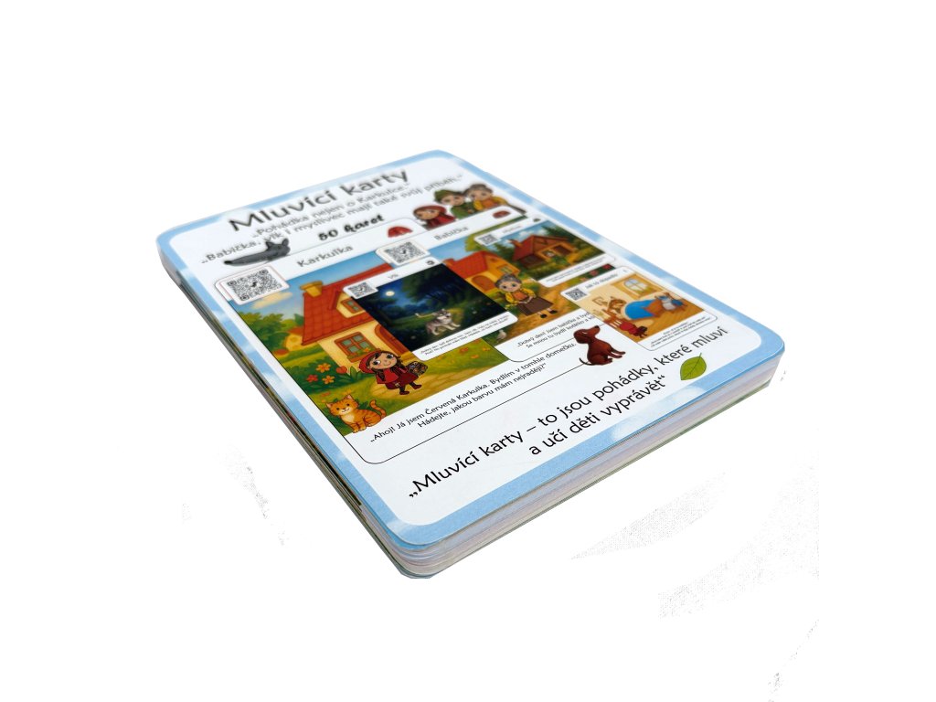 Mluvící karty jsou vyprávěcí karty s dějovými sekvencemi a zvukovými nahrávkami, které rozvíjejí řeč, představivost a porozumění příběhu skrze různé pohledy na známou pohádku. Mluvící karty rozvíjejí schopnost vidět situace z různých pohledů, představivost, slovní zásobu a vyjadřování, reakci a dialog. Mluvící karty představují kompletní interaktivní sadu, která propojuje poslech, vyprávění, představivost a hru.