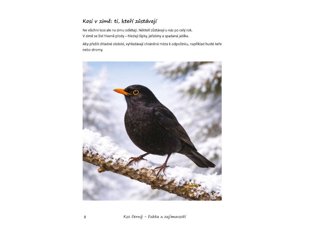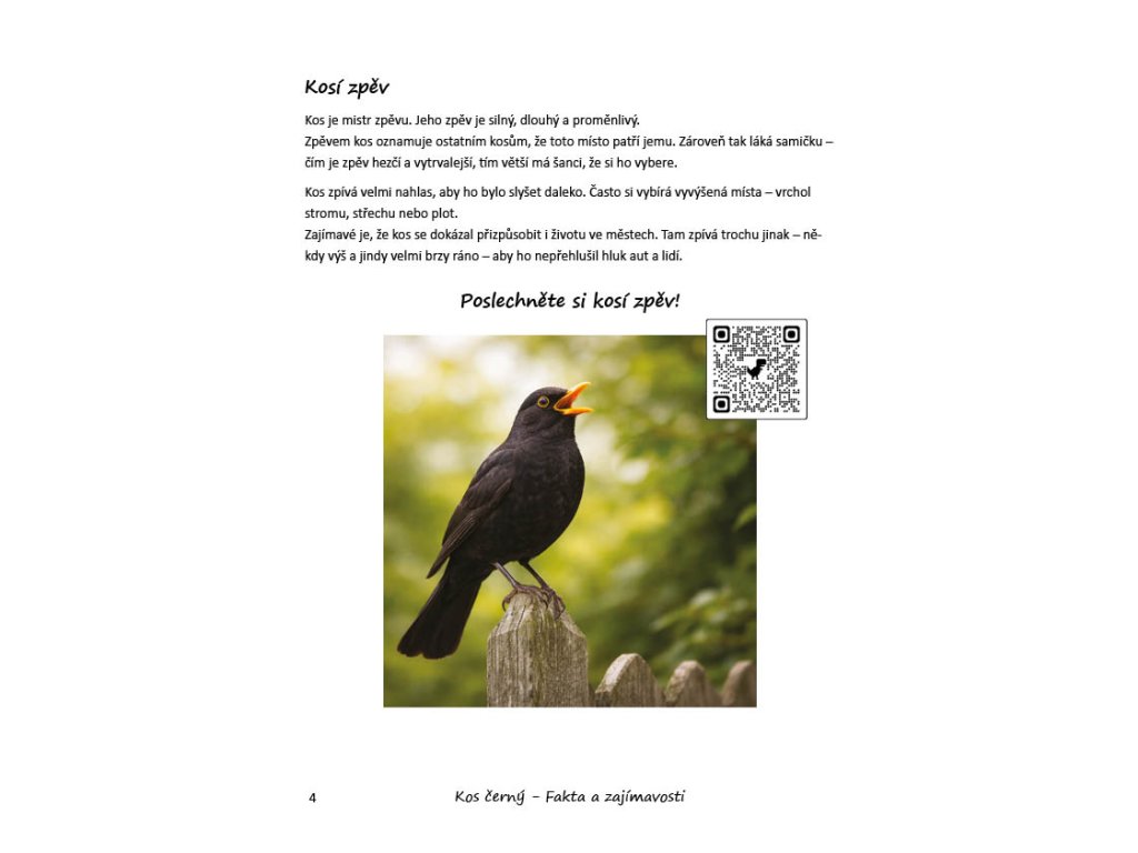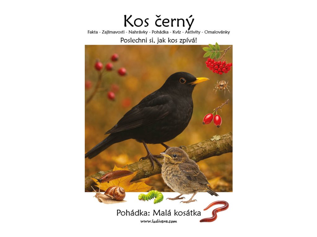 Edukativní materiál o kosovi černém přibližuje dětem život jednoho z nejznámějších ptáků našich zahrad hravou a srozumitelnou formou. Nabízí pohádku, fakta, poslech zpěvu, aktivity i omalovánky a podporuje vztah dětí k přírodě.